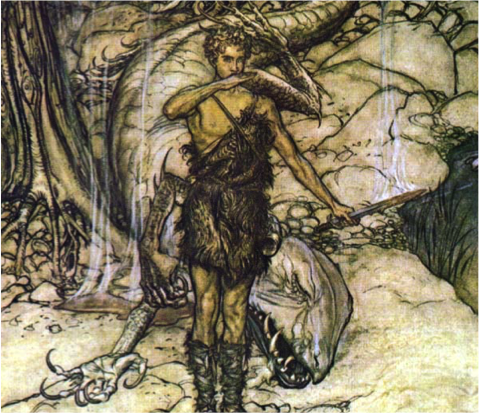 Mime hatte ohne Erfolg versucht, das Schwert auf herkömmliche Weise zu flicken. Siegfried setzt sich über alle Konventionen der Schmiedekunst hinweg: Der Revolutionär zerspant das Schwert in seine Grundsubstanz, um diese in eine neue Form zu gießen. Er tauft das Schwert auf seinen alten Namen Notung: